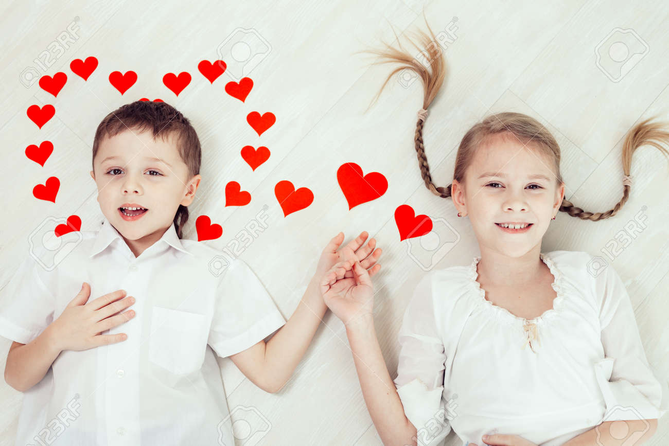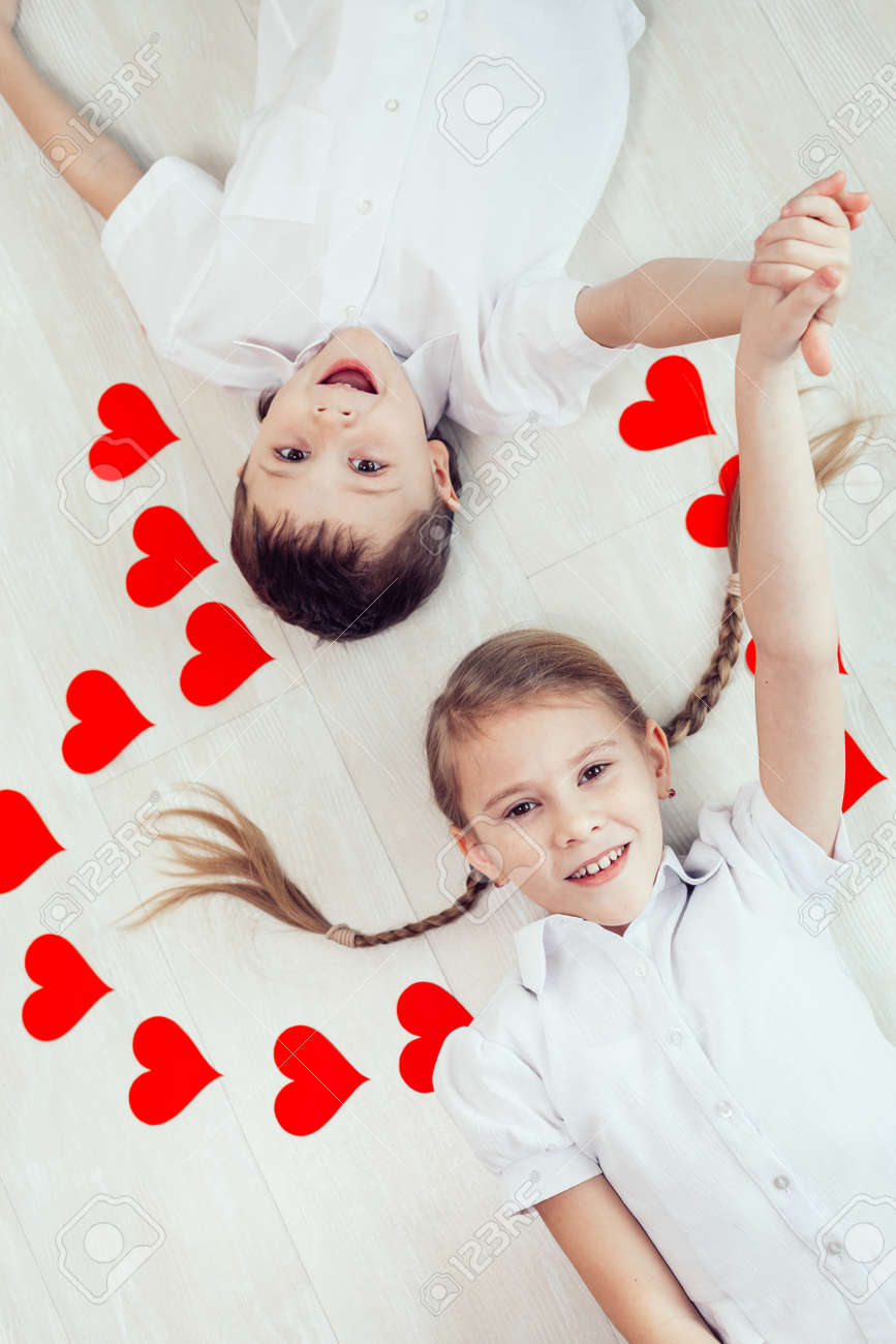 Application Name: Nino Y Nina Tendido En El Suelo Concepto De Feliz Dia De San