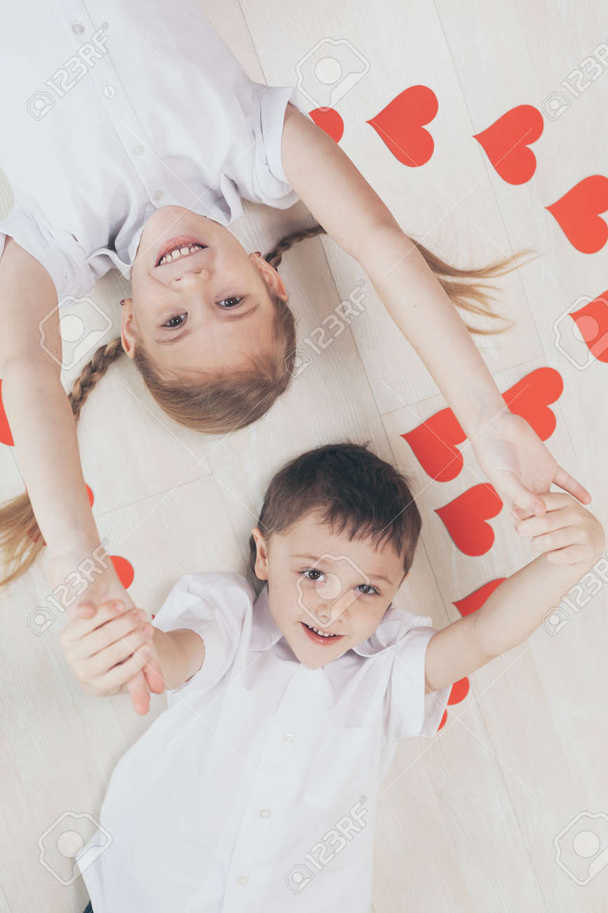 Application Name: Nino Y Nina Tendido En El Suelo Concepto De Feliz Dia De San